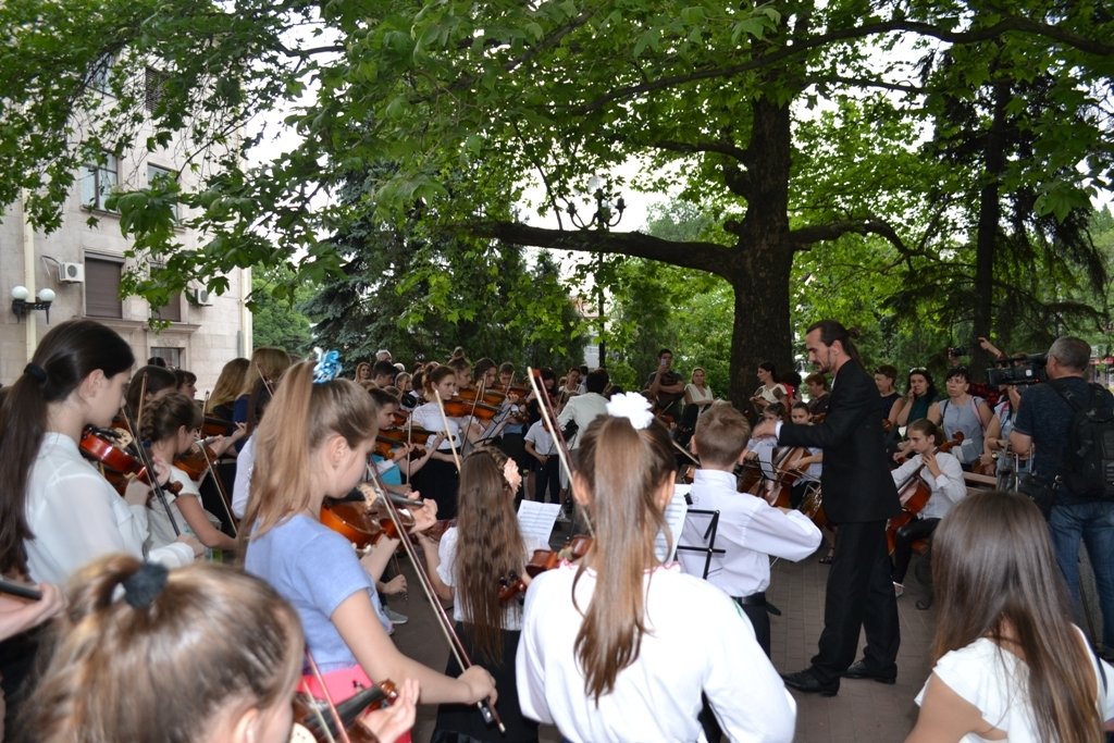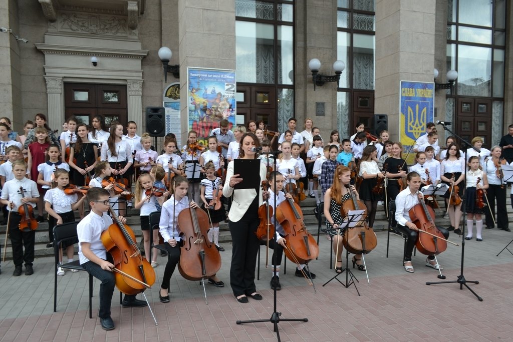 25 травня у Запоріжжі відбулося надзвичайне музичне дійство. Більш ніж 120 учасників – юних скрипалів та віолончелістів із 12-ти шкіл мистецтв – виконали під відкритим небом на сходах Запорізької обласної філармонії уривок з «Оди до радості» Л. Бетховена.
