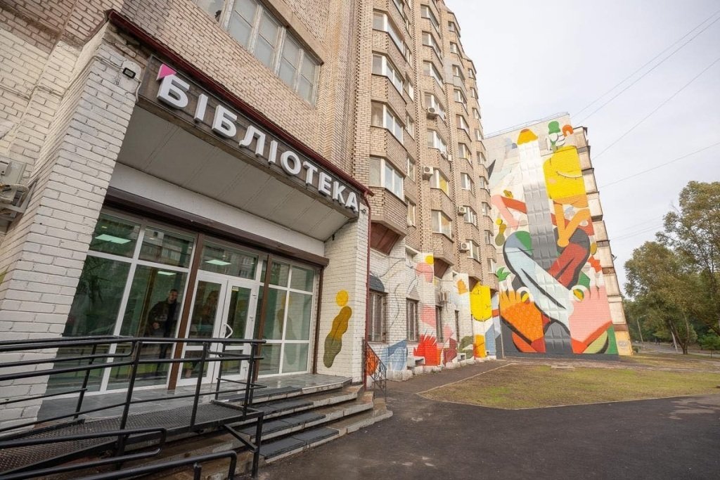 Зазначимо, біля бібліотеки також виконали благоустрій території. Оновили асфальтне покриття, засіяли газон, встановили лавки, урни, освітлення. Фасад будівлі прикрасили муралом «Заплутана історія». Над його створенням працювали графіки, художники street-art, дизайнери В’ячеслав Луніка і Анастасія Меркулова у рамках проєкту «Сучасне мистецтво для покоління Z».