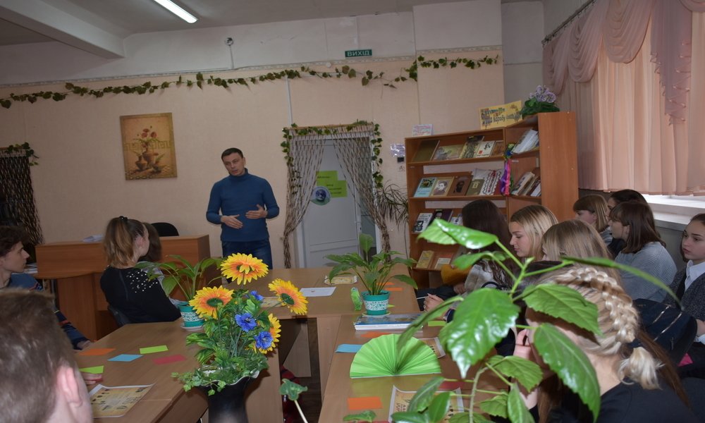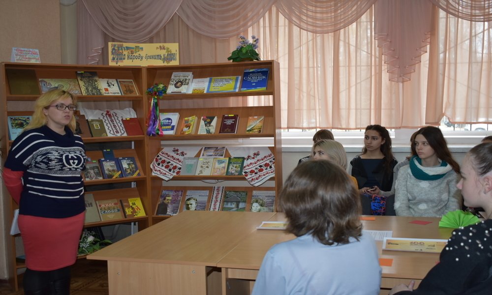 На зустріч з молоддю бібліотекарі запросили кандидата історичних наук Ю.Щура, який детально розповів про значення Української революції 1917-1921р.р. в історії українського народу. Захід супроводжувала книжкова виставка «Сторінками української революції».
