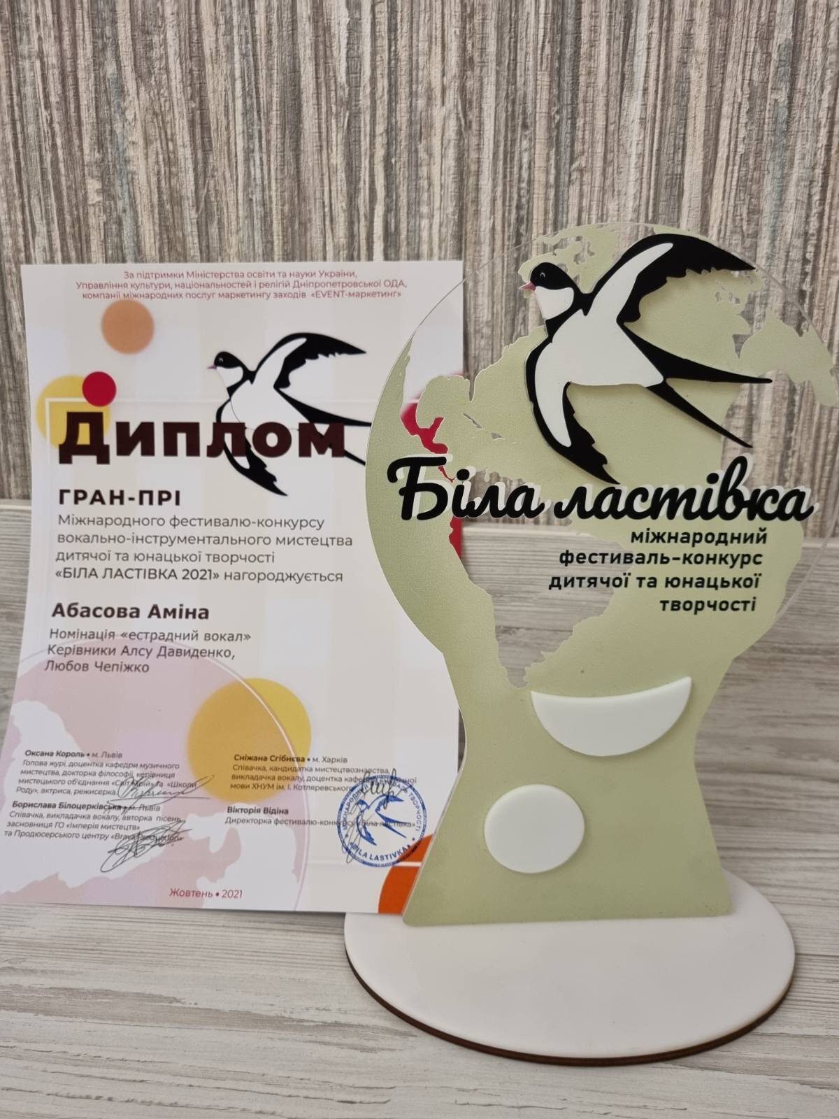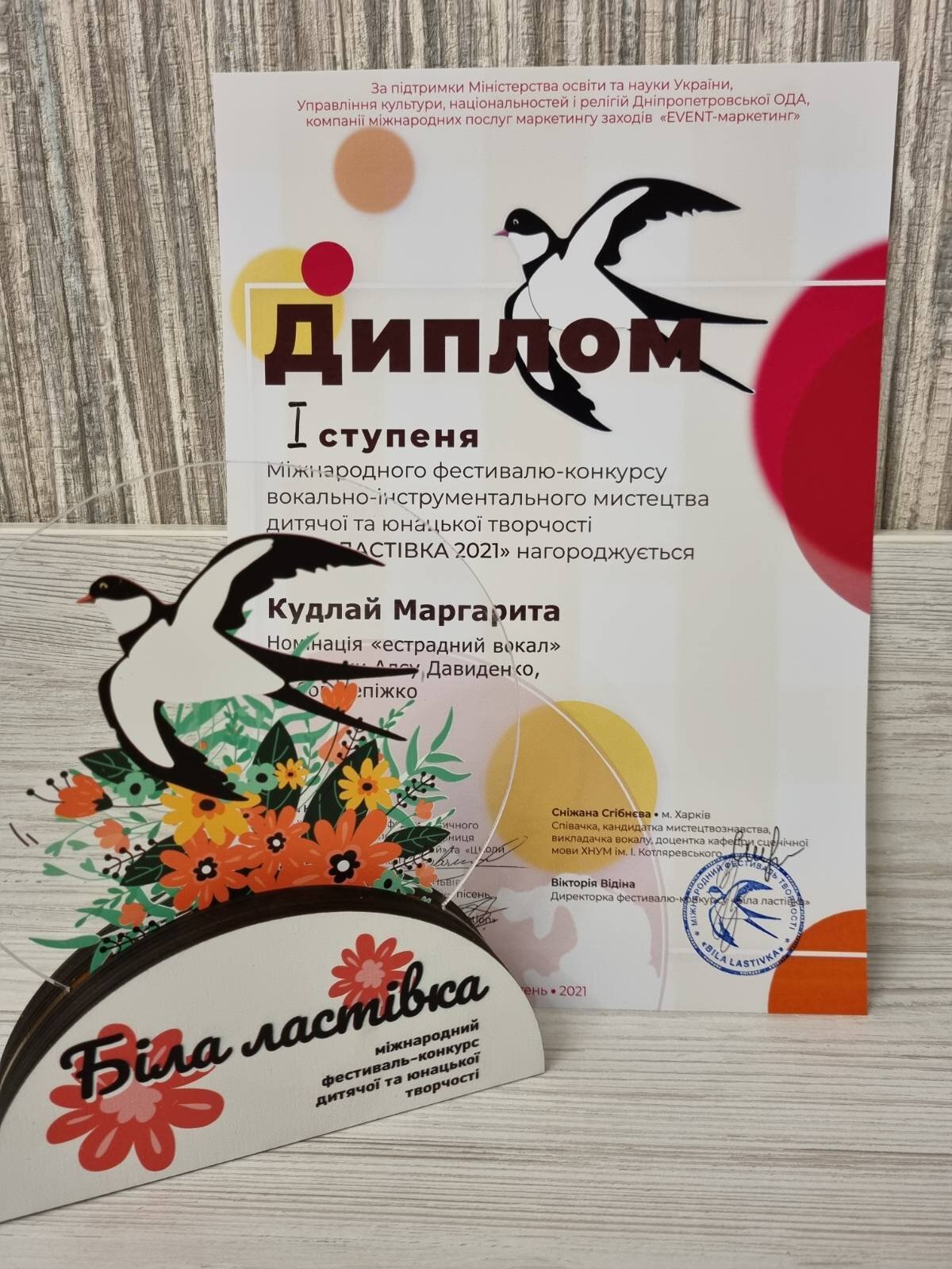 16 жовтня 2021р. у м. Дніпро за підтримки Міністерства освіти та науки України відбувся дистанційний міжнародний фестиваль-конкурс вокально-інструментального мистецтва «Біла ластівка – осінь 2021». У конкурсній програмі взяли участь солістки вокально-естрадної студії «Ритм» палацу культури «Хортицький» (керівник Давиденко А. К.). За рішенням професійного журі Аміна Абасова із піснею "Відьма" Ілларії отримала «Гран-прі», а Маргарита Кудлай за виконання пісні «Голубка» здобула диплом першого ступеню.