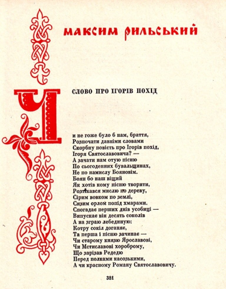 Світова література знає небагато творів, які б як «Слово о полку Ігоревім» захоплювали нові й нові покоління, здобували все ширшу й гучнішу славу.