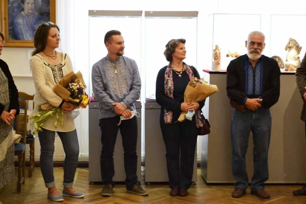 Лариса та Олександр Жолудь - викладачі скульптури та кераміки у ДХШ, а їх син Сергій та невістка Аліна, на сьогодні, львівські художники. Представлені на виставці роботи проникнуті любов’ю до рідної землі, її міфології та героїчної історії. Увагу глядачів привертають як сакральні жіночі образи Л. Жолудь, так і величні монументальні рельєфи та вишукані алегорії О. Жолудя.