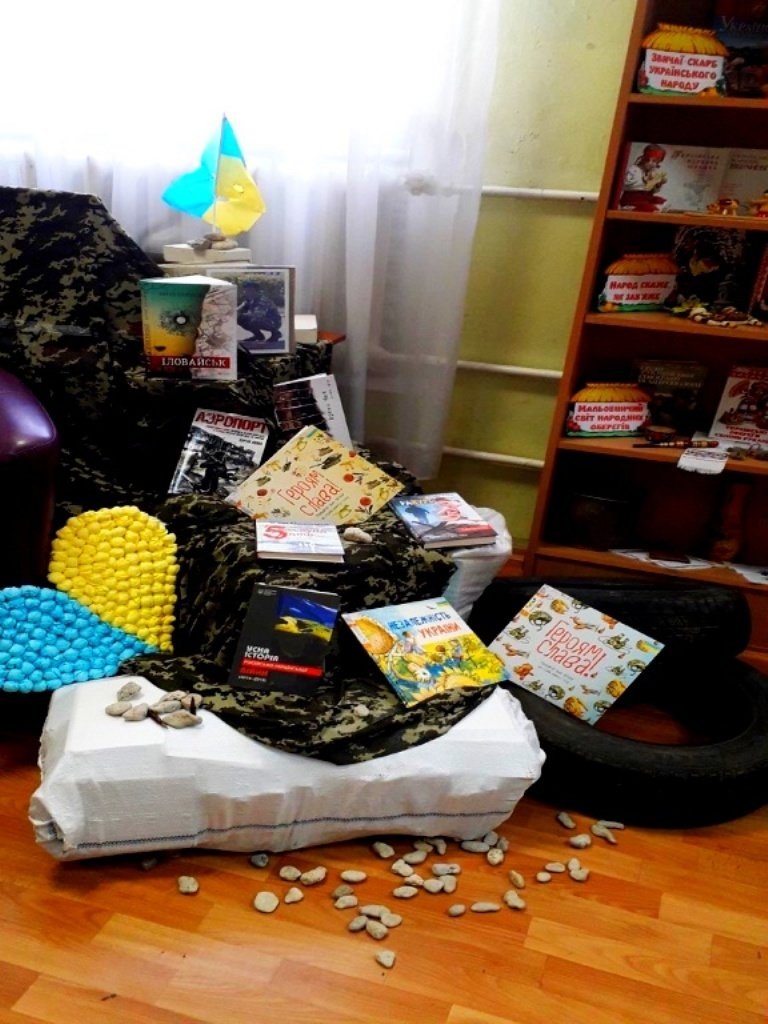 Саме тому бібліотекою по проспекту Моторобудівників, 64 (Шевченківський район) підготовлено виставку-інсталяцію «Творці історії та нації», яку присвячено всім захисникам України.