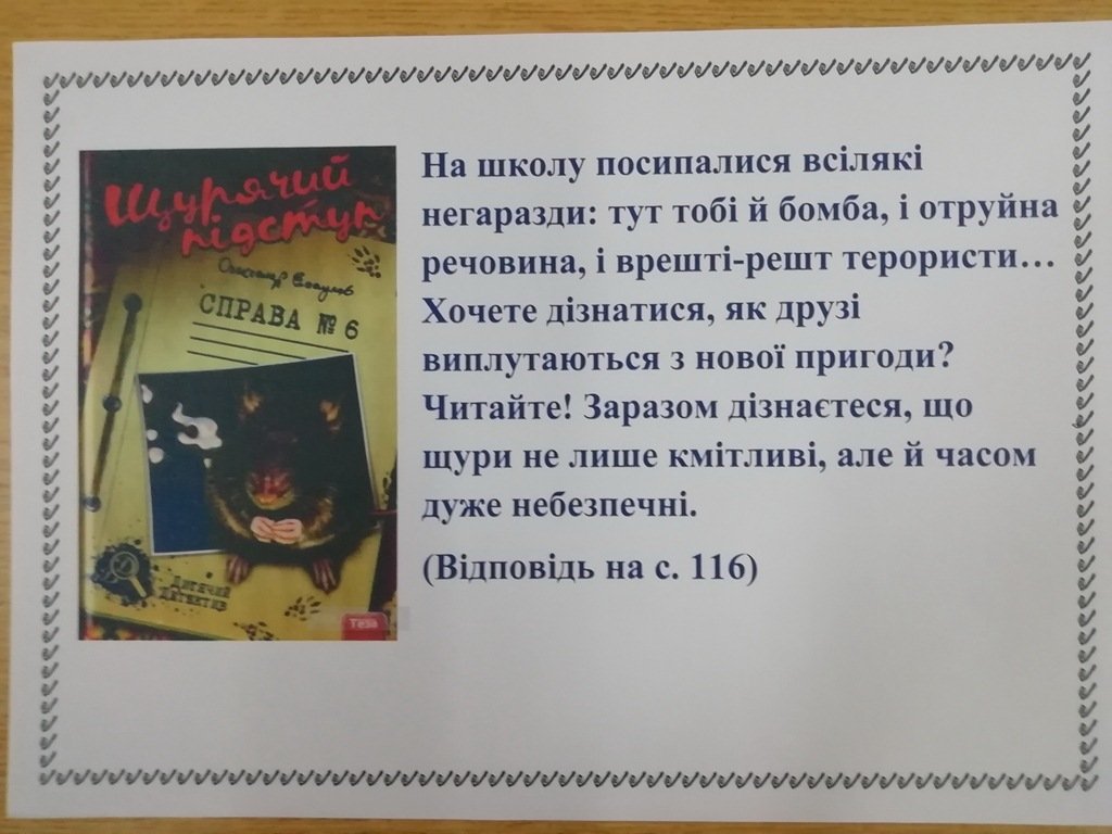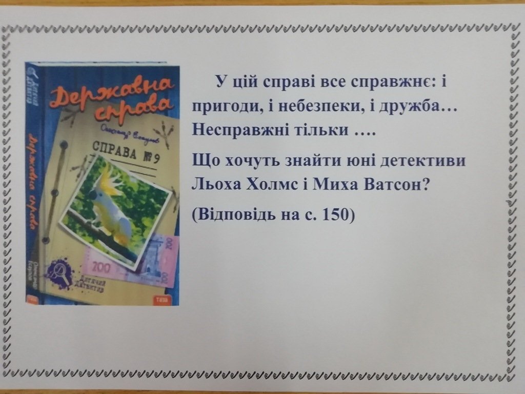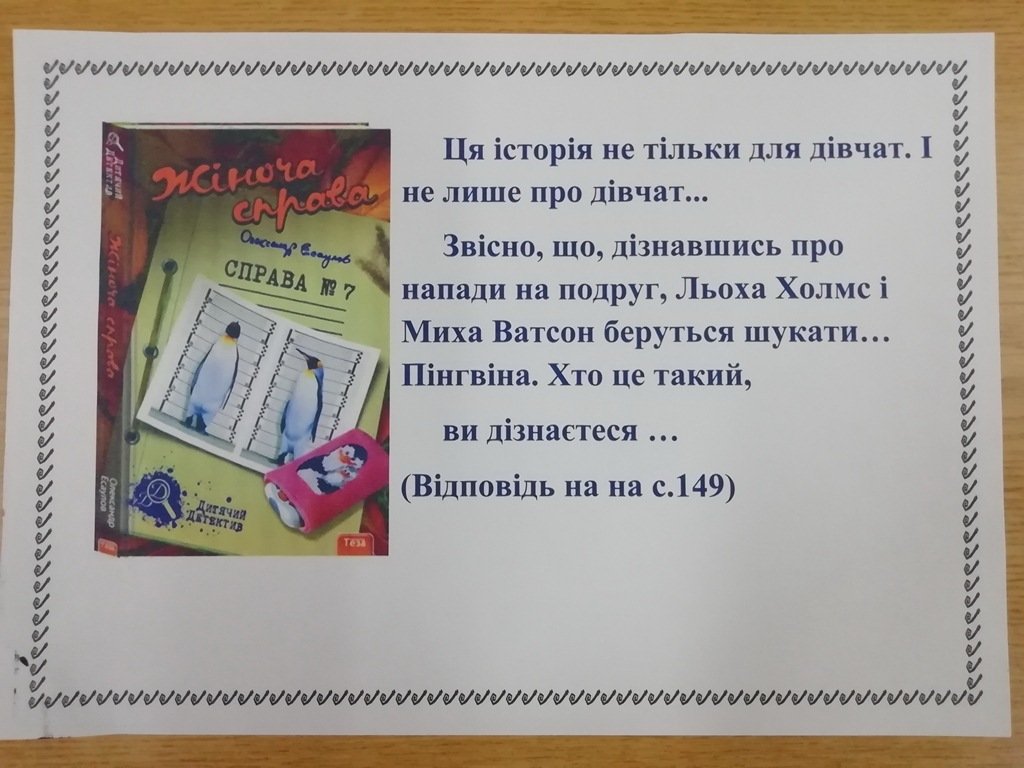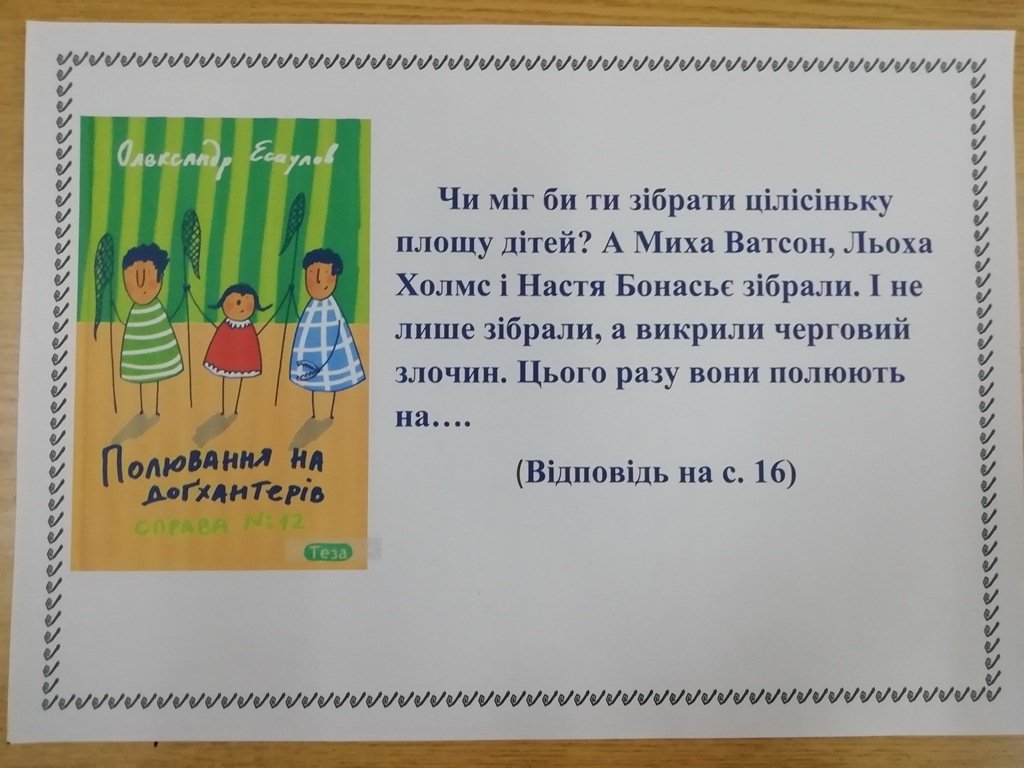Бібліотека для дорослого населення №3 (вул. В.Сергієнка, 11, Хортицький район) запрошує юних читачів пройти літературний квест за допомогою виставки «Детективні історії».