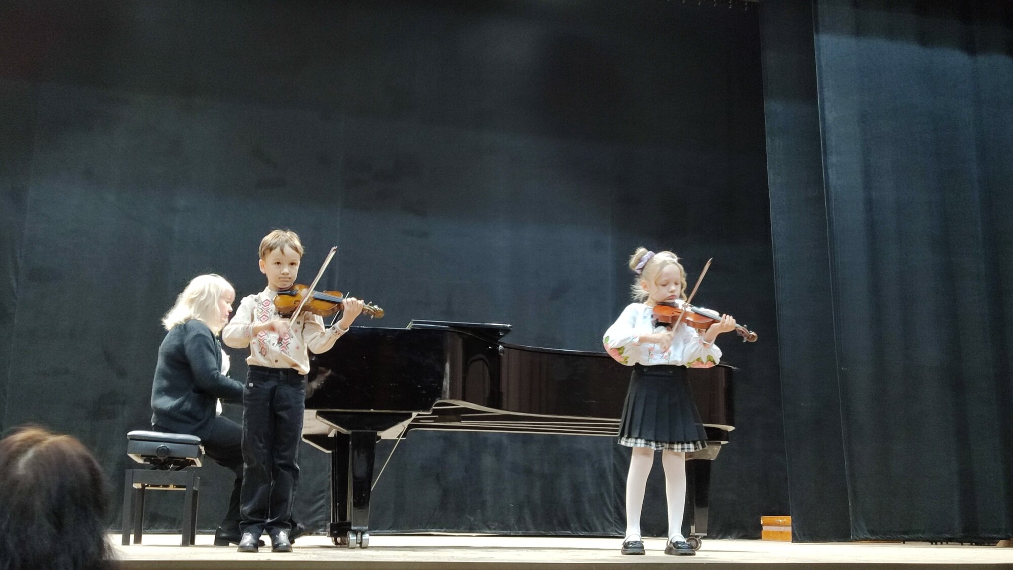 ІІІ місце - дует скрипалів: Швець Іларія, Трасковецька Анна, викладач Пономаренко Л.О., ЗДШМ №3