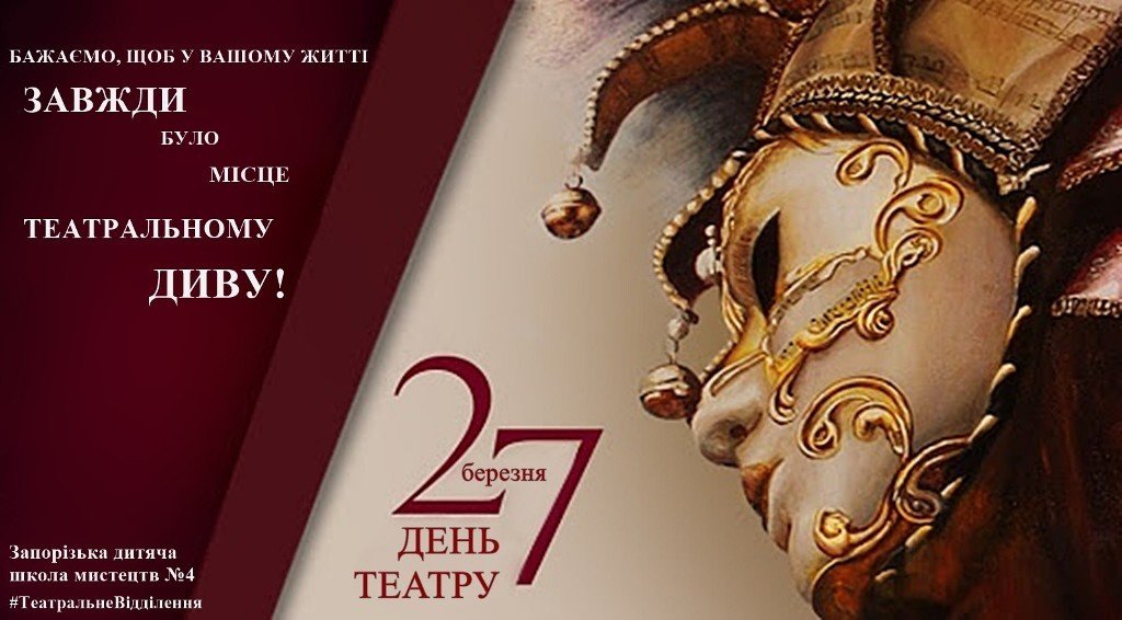 Запорізька дитяча школа мистецтв № 4 щиросердно вітає з прекрасним святом, яке об’єднує не лише всіх театральних працівників, але й численних прихильників цього дивовижного мистецтва – з Міжнародним днем театру!