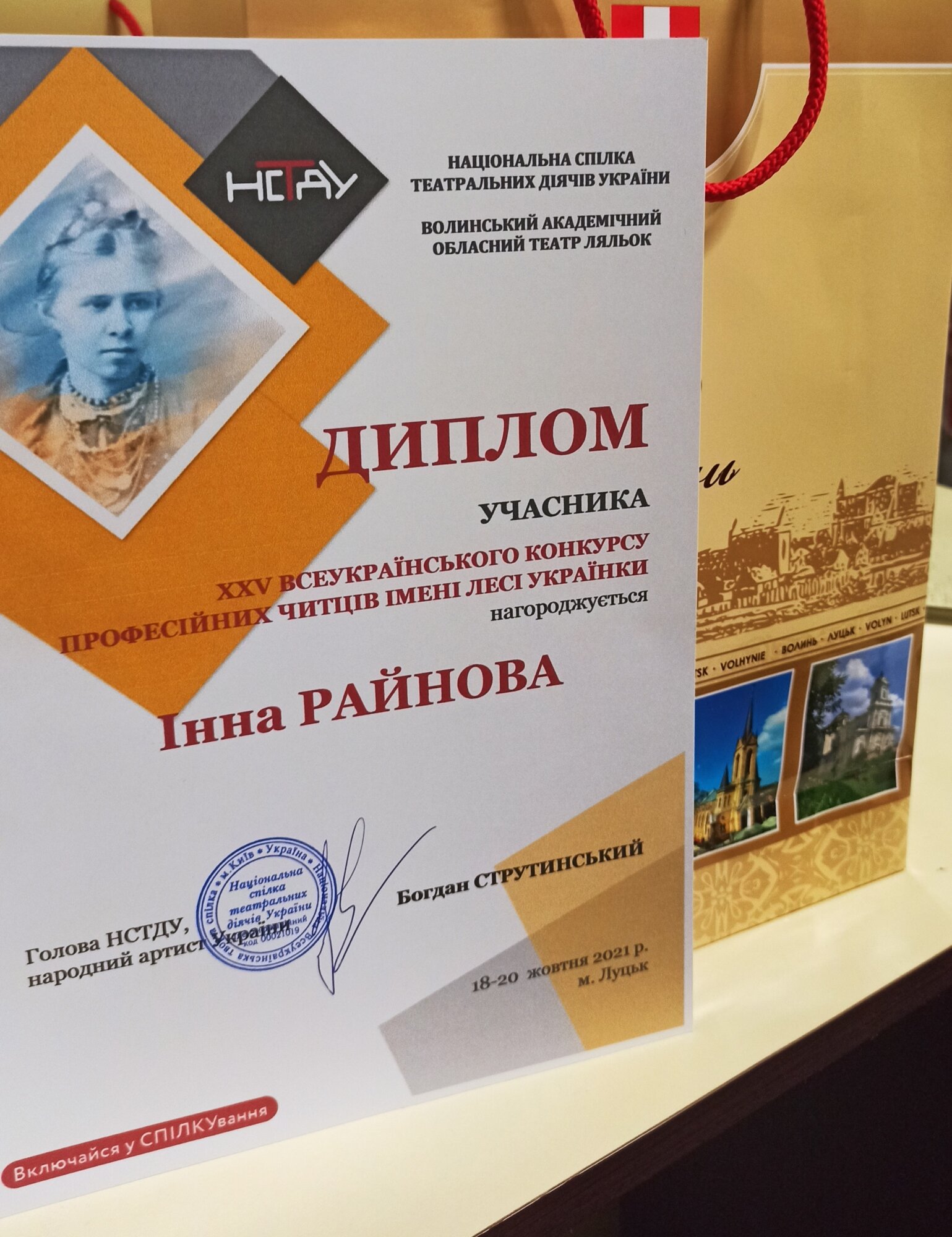 З 18 по 20 жовтня 2021 року у Луцьку у Волинському академічному обласному театрі ляльок за підтримки Національної спілки театральних діячів України відбувся заключний етап ХХV Всеукраїнського конкурсу професійних читців імені Лесі Українки.