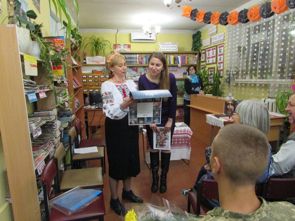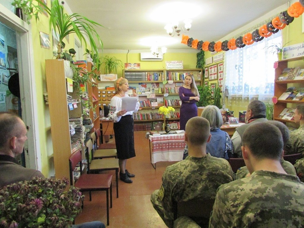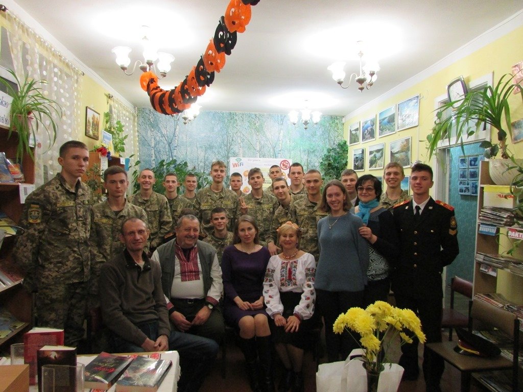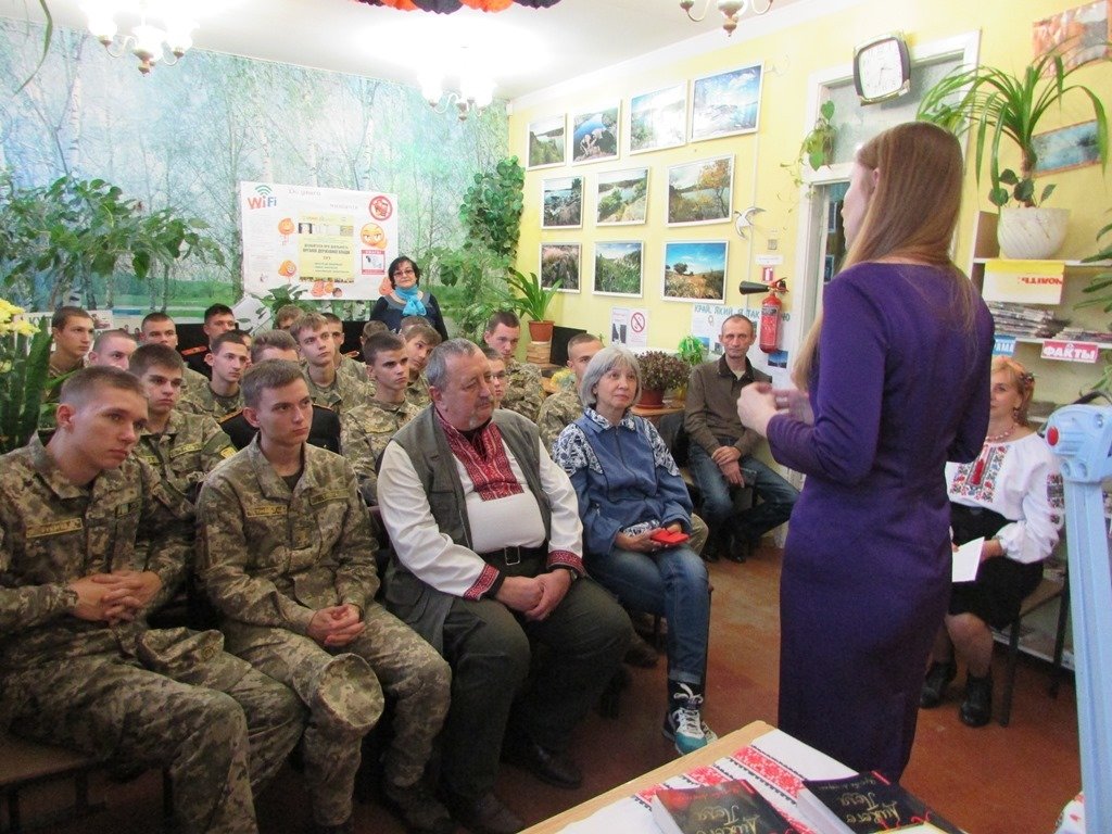 Пані Яся завітала до бібліотеки з презентацією нового історичного роману «Зраджений гетьман». У літературному вечорі взяли участь шанувальники творчості письменниці та вихованці ліцею «Захисник». Хлопці були вже обізнані творчістю пані Дегтяренко, бо ними вже прочитані «Лицарі Дикого Поля», «Між двох орлів», тому до щирої бесіди були готові.