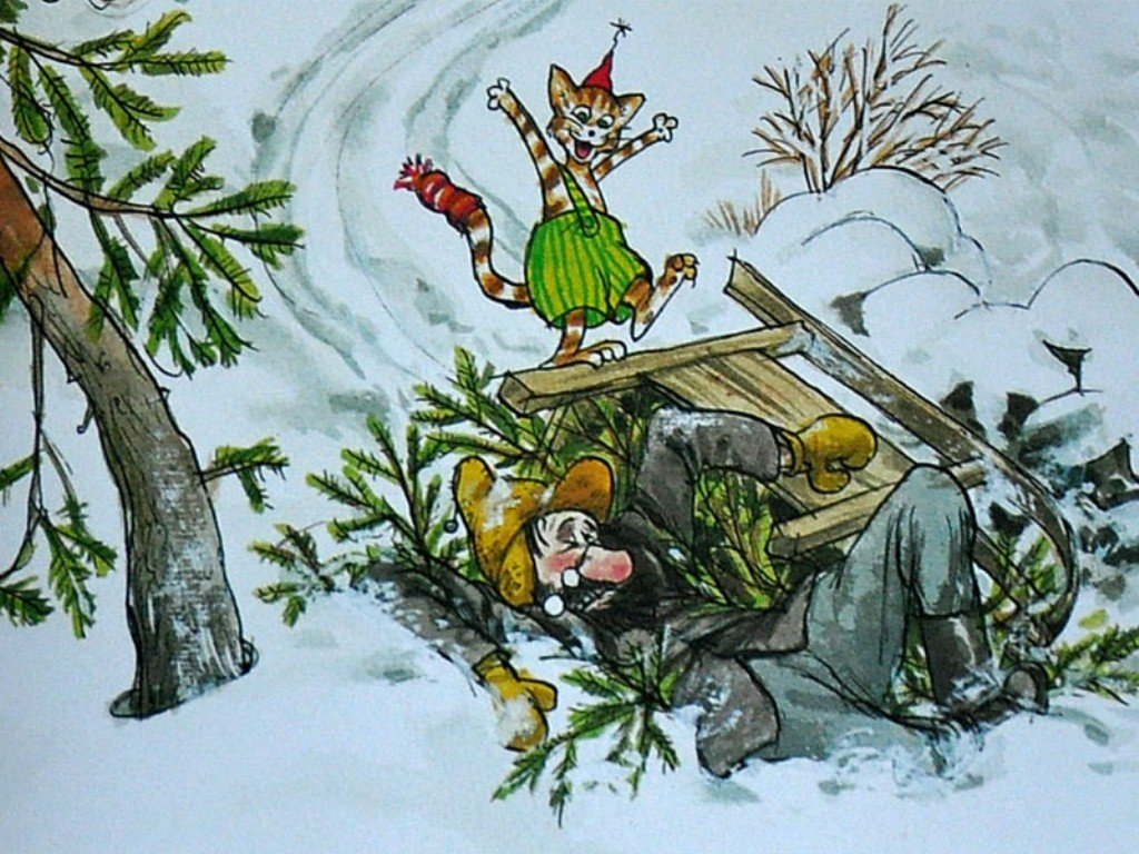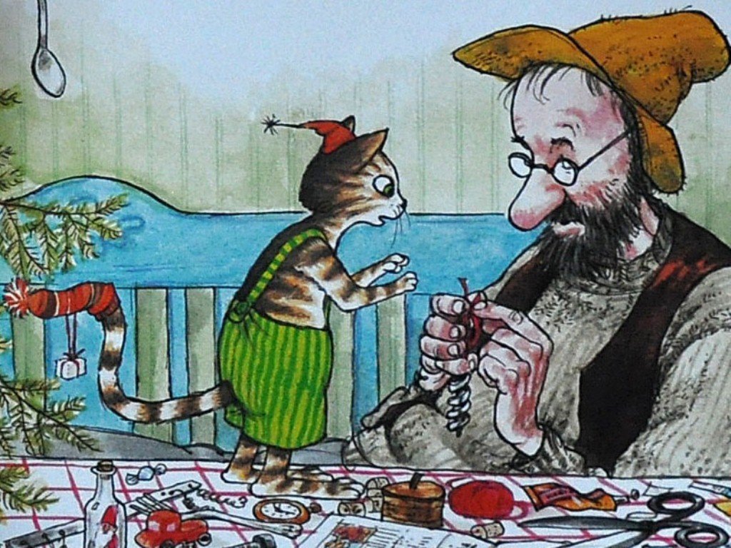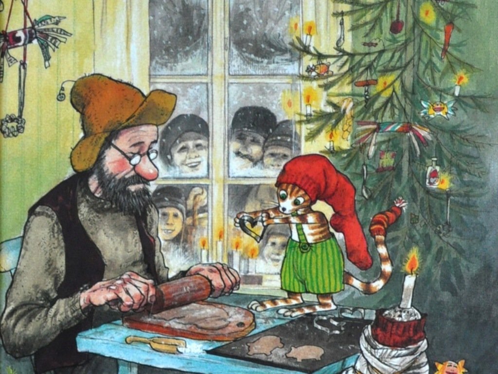 Ця історія про Різдво написана шведським дитячим письменником Свеном Нурдквістом. Вона добра, затишна і дуже новорічна. У дідуся Петсона перед Різдвом багато турбот: треба прибрати, напекти перцевого печива, в магазин сходити за провізією, ялинку зрубати, прибрати сніг… Але по дорозі за ялинкою Петсон ламає ногу. І стає так сумно! Адже свято скасовується: ні ялинки, ні їжі, ні прибирання. Але Різдво вийде повернути, коли допомагати береться котик Фіндус, а потім підключаться сусіди. Саме тоді в будинок прийде відчуття Різдва.